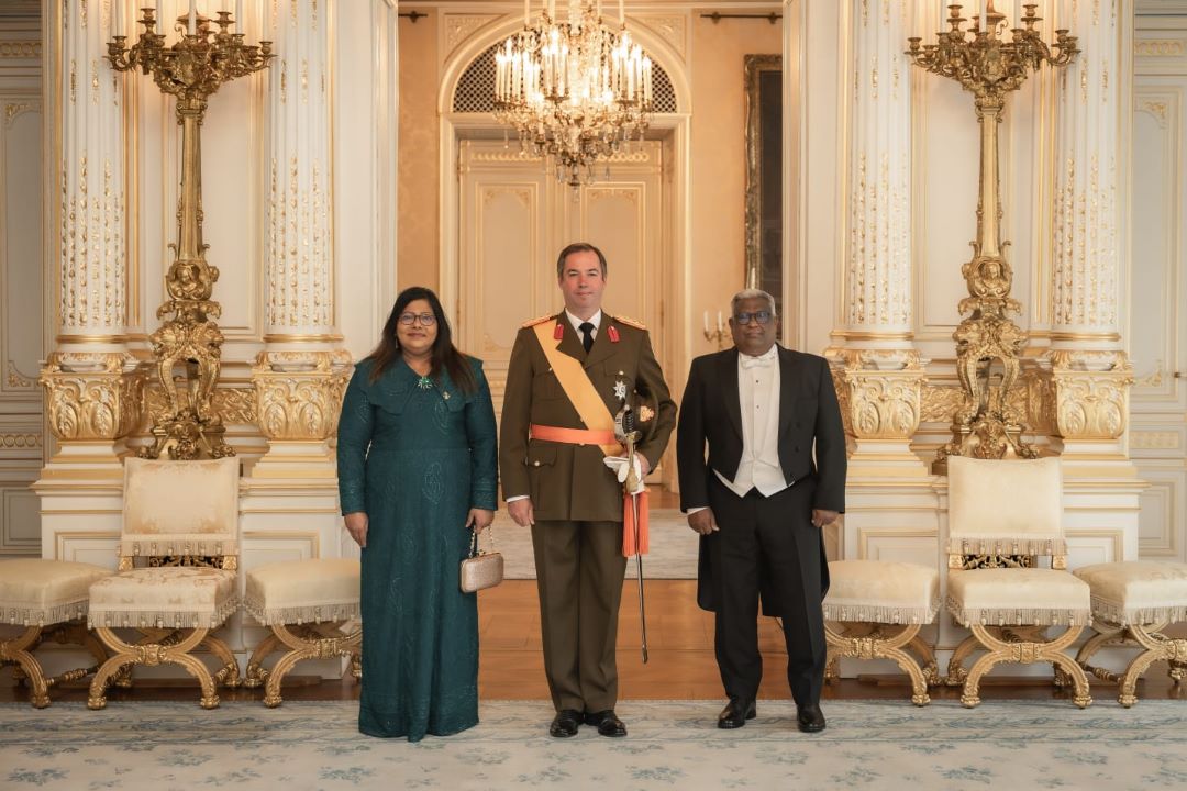 The newly appointed Ambassador Extraordinary and Plenipotentiary of Maldives to the Grand Duchy of Luxembourg, Geela Ali, presented her Letters of Credence to His Royal Highness the Hereditary Grand Duke Guillaume of Luxembourg. The ceremony took place at the Grand Ducal Palace in Luxembourg this morning.